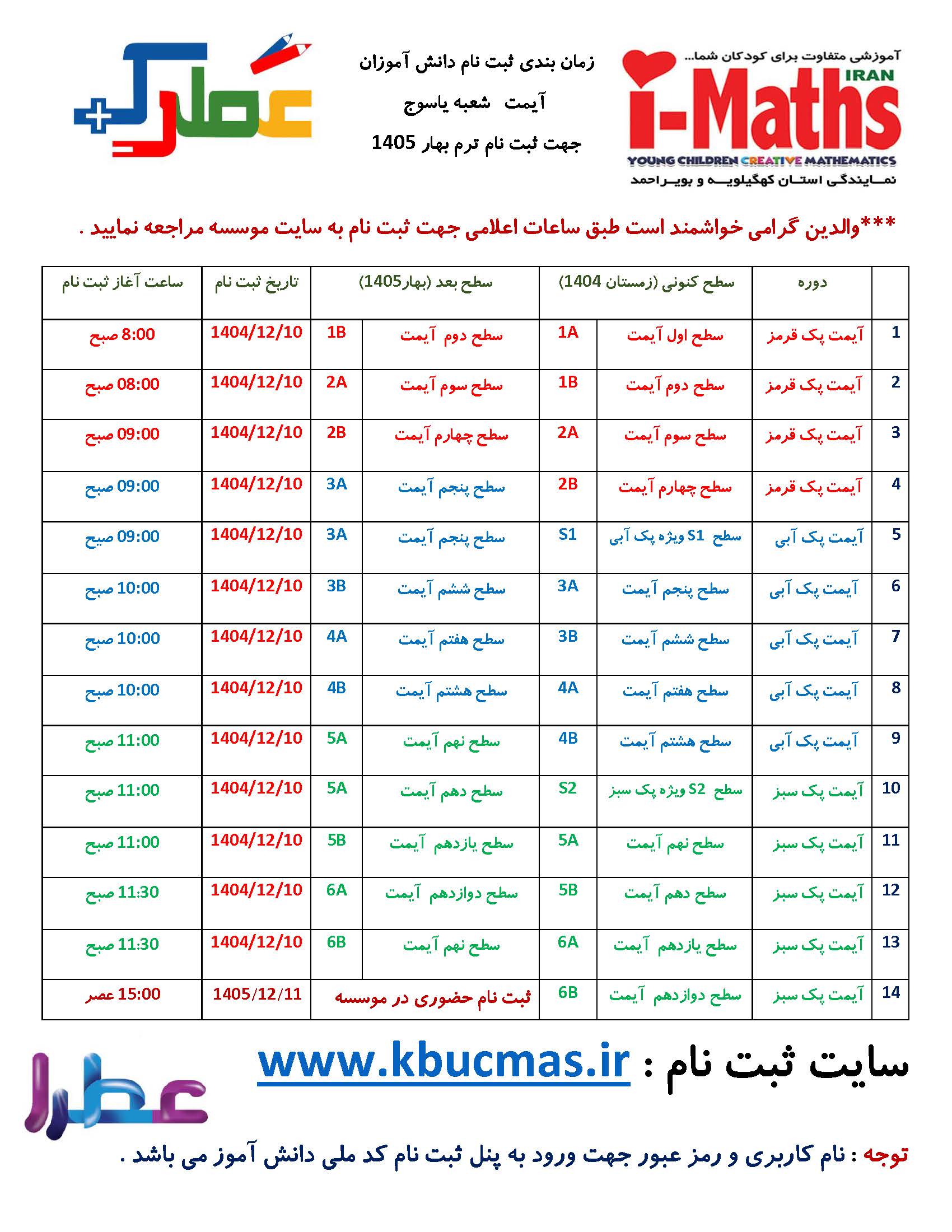 زمان بندی مراجعه برای ثبت نام کلاس های آیمت ترم بهار 1405